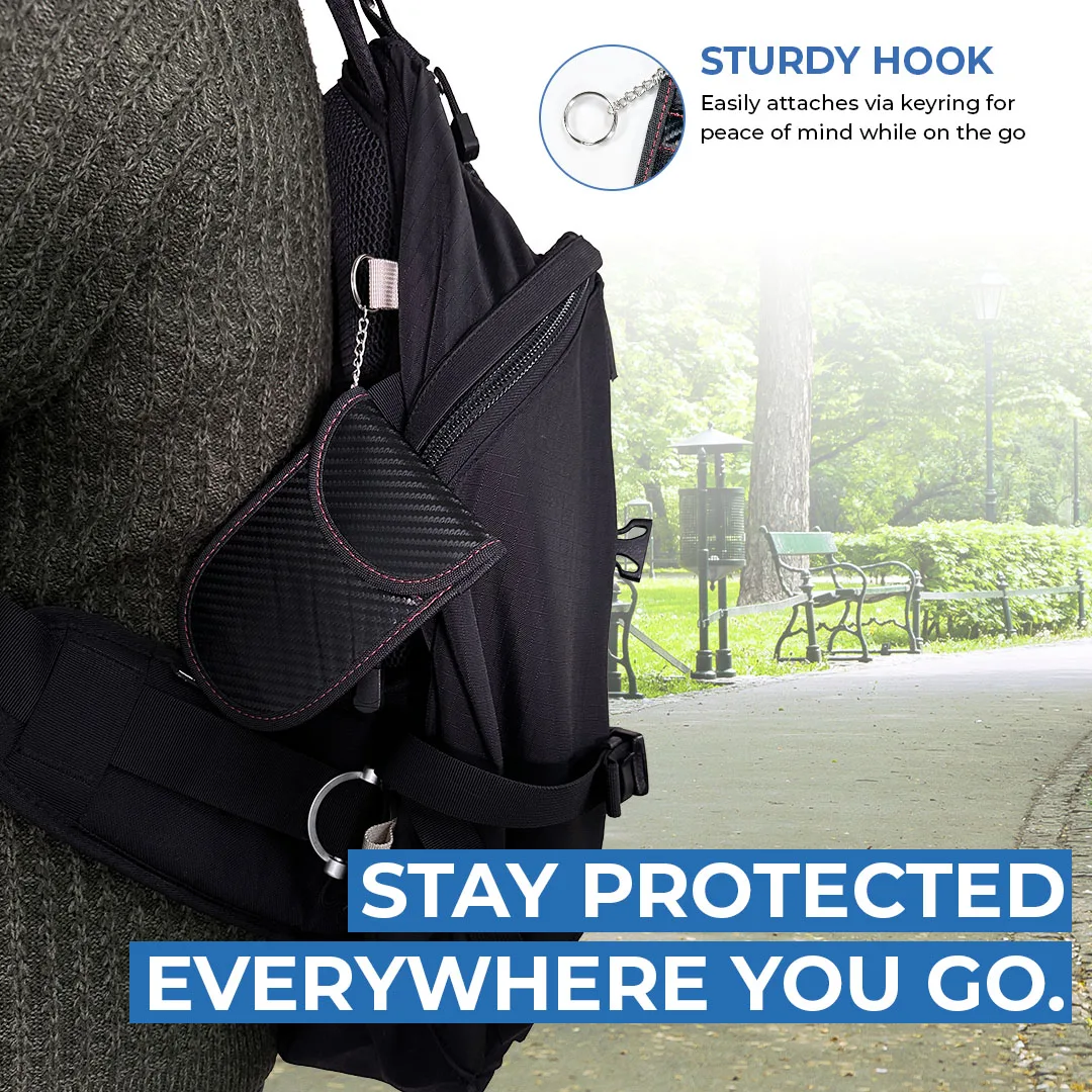 - Securely Blocks Wireless Signals – The textured shielding material offers protection against WiFi, RFID, GPS, Bluetooth & NFC signals ensuring this key pouch keeps your vehicle secure at all times.